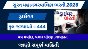 સુરત મહાનગરપાલિકા (SMC) દ્વારા Driver (Heavy Goods Vehicle) માટે મોટી ભરતી જાહેર કરવામાં આવી છે. આ ભરતી હેઠળ કુલ 444...